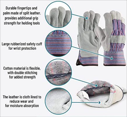 3. Độ bám tuyệt vời: Da xẻ chất lượng trên lòng bàn tay của những chiếc găng tay lao động này cung cấp thêm độ bám để cầm dụng cụ hoặc đẩy xe cút kít.